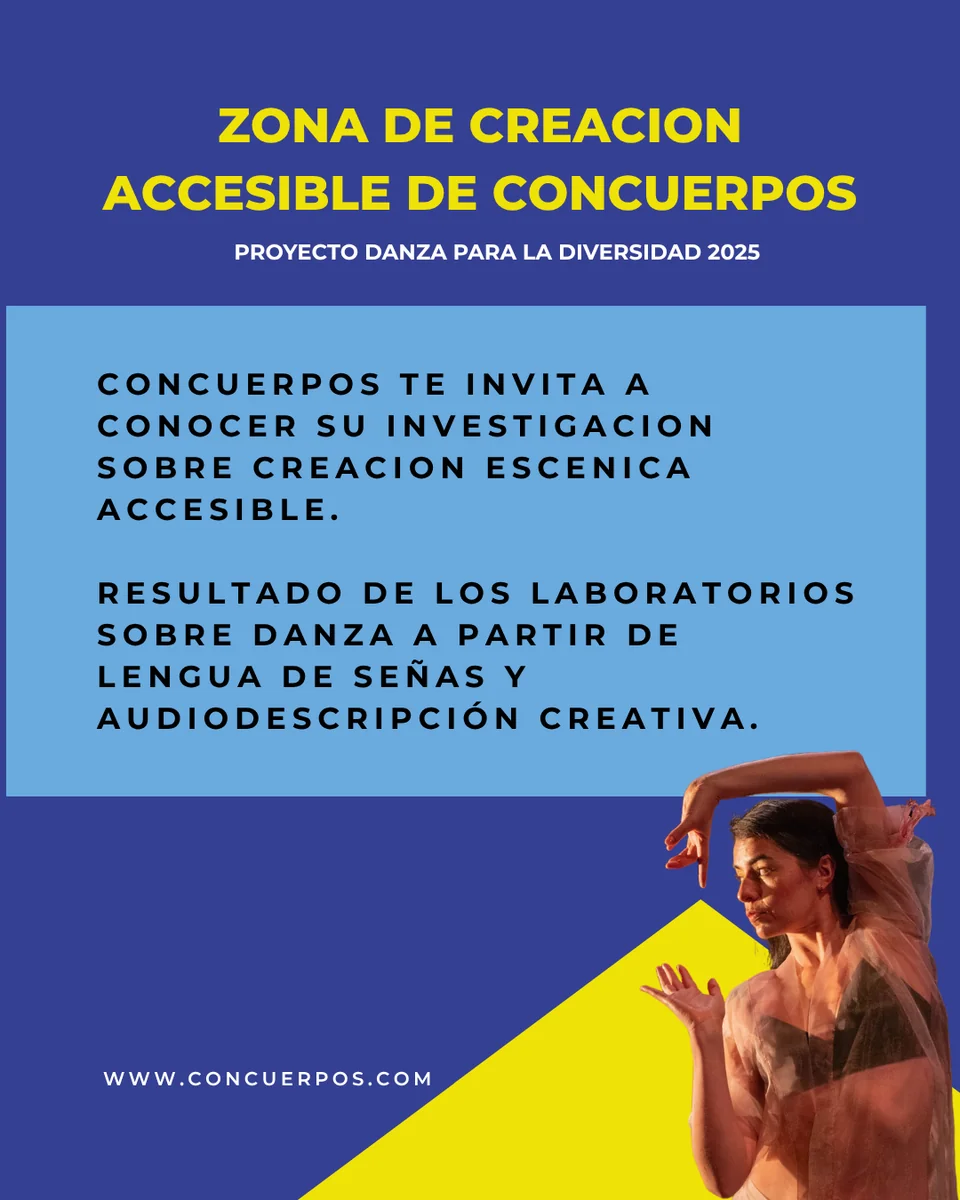 Parte del Proyecto Danza para la Diversidad 2025 de ConCuerpos, Apoyado por el Programa Nacional de Concertación Cultural del Ministerio de las Culturas, Las Artes y Los Saberes, proyecto C3226_2025; y por la Secretaría de Cultura, Recreación y Deporte con la Beca Expresiones Culturales y Artísticas de Personas con Discapacidad 2025