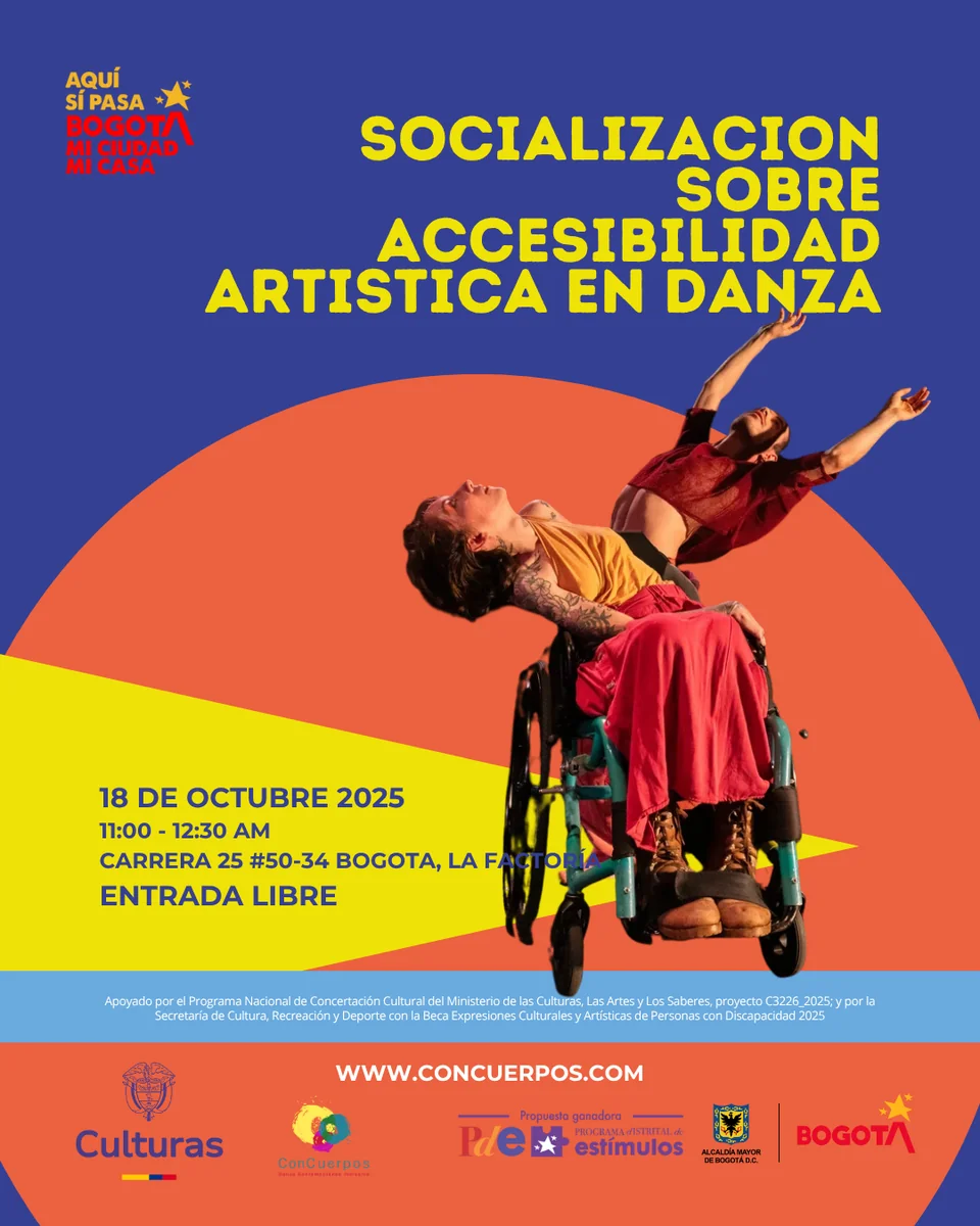 Convocatoria 2-2025 a BECAS PARTE DEL PROYECTO DANZA PARA LA DIVERSIDAD 2025 Apoyado por el Programa Nacional de Concertación Cultural del Ministerio de las Culturas, Las Artes y Los Saberes proyecto C3226_2025. Y por la Secretaría de Cultura, Recreación y Deporte con la Beca Expresiones Culturales y Artísticas de Personas con Discapacidad 2025 La Corporación ConCuerpos abre su convocatoria pública 2- 2025 de becas para su Clase Permanente de Danza Inclusiva. Ofrecemos 15 becas completas que cubren tres meses de formación (SEPTIEMBRE, OCTUBRE Y NOVIEMBRE) de forma gratuita en la ciudad de Bogotá. Sobre ConCuerpos ConCuerpos es la organización de danza inclusiva pionera en Colombia. Creemos en la importancia de reconocer la div ...