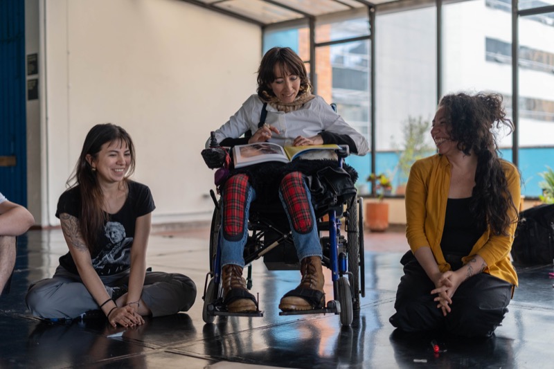 El taller de Formación a Formadores se realizó del 23 al 30 de octubre de manera intensiva en las instalaciones de La Futilería Calle 59 No 17-48, Bogotá. 15 personas fueron beneficiarias de las becas ofrecidas. Los y las participantes son maestras y maestros de danza de diversos géneros que trabajan con población con discapacidad tanto en Bogotá como en municipios aledaños, e incluso en el extranjero. El taller fue liderado por Laisvie Andrea Ochoa y Diana León de ConCuerpos, quienes ofrecieron herramientas prácticas de la metodología que ConCuerpos ha desarrollado sobre la danza contemporánea inclusiva. Asimismo, propiciaron momentos de reflexión oral y escrita en donde el grupo discutió y ahondó sobre qué significa la inclusión, la accesibilidad, la discapacidad, el cuerpo que baila, la danza, etc. De este modo, cada participante definió sus propios principios pedagógicos para permitir que su práctica docente sea accesible a personas diversas.